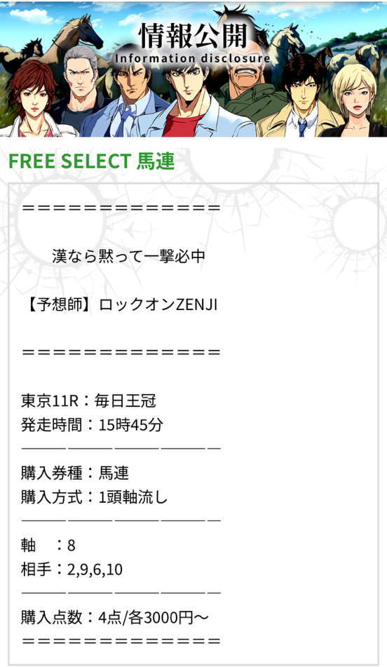 チョイスしたのはエフセレクトって言うサイトの無料予想