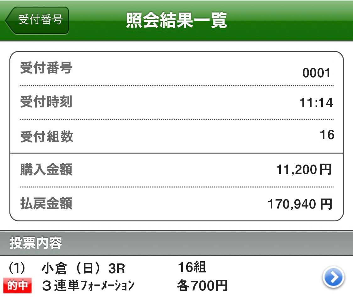 的中したレースの即PAT画像貼ります。