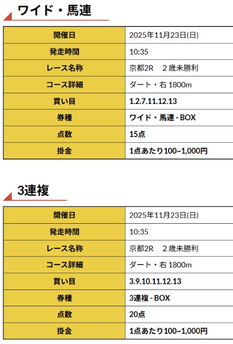 すぐに登録をして迎えた23日(日)の無料予想