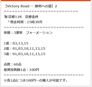 無料予想の馬券代は総額1万円って決めていたので